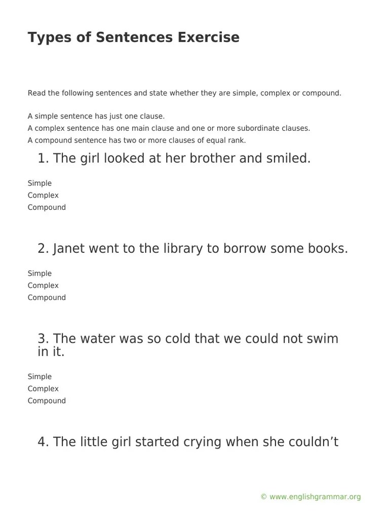 Simple And Compound Sentences Exercises / Simple Compound And Complex Sentence Quiz By Teaching Georgia Littles -. A simple sentence has one complete subject and one complete predicate. Combine the following sentences into simple sentences. Identify dependent & independent clauses. Simple sentences, compound sentences, complex sentences. She is intelligent while her sister is dull.